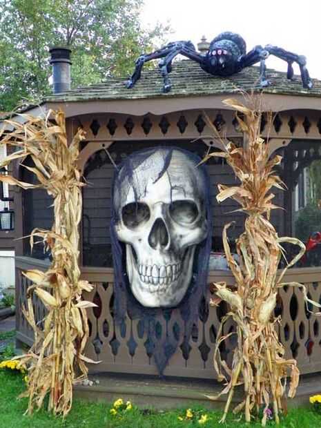 la primera Halloween después nos casamos, mi maridito, me llevó a dar un paseo a una comunidad vecina. Nos detuvimos frente a una casa que tenía una araña enorme en el techo. Él dijo, "Quiero eso". Así, el próximo Halloween, y cada uno desde ent