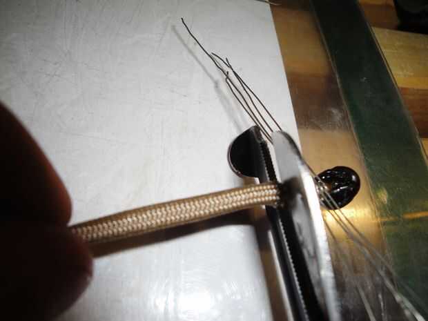 Curva de la "v" abierta y ampliarla, entonces cuidadosamente derretir el extremo abierto del cable 550 hasta han formado una pequeña cabeza, con los alambres que servirá como la araña quelíceros o "tiburón" que sobresalen hacia afuera. No toque los componentes de alambre durante este paso, como metales conducta calor y podría quemar.