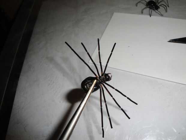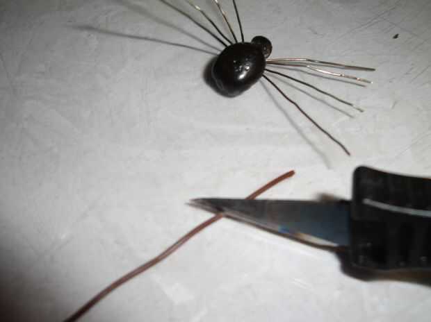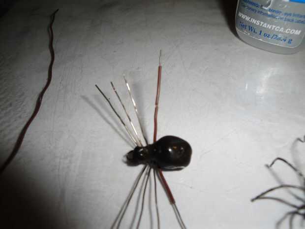 Enderece las patas de la araña, asegurando que todavía se puede ver donde se encontraban las curvas originales. Cortar pequeñas secciones de aislamiento para coincidir aproximadamente con la longitud de cada segmento de la pata. Como usted Deslice el aislamiento sobre las piernas enderezadas, asegúrelo en su lugar con un pequeño toque de pegamento.