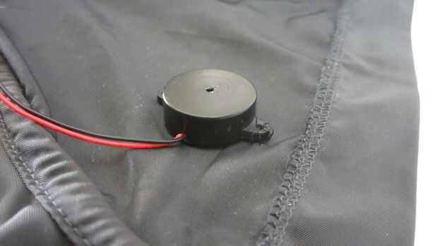 Un zumbador puede acoplarse en el interior cuello de la chaqueta o en una campana. Sólo lo coser a la tela en los orificios de montaje.