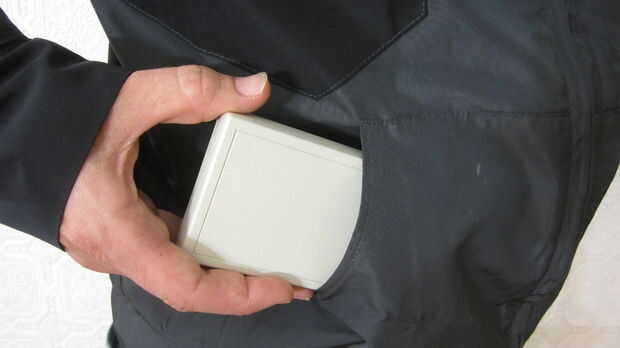 El Arduino y su vivienda generalmente caben en uno de los bolsillos. Puede que necesite cortar un agujero en el interior del bolsillo de los cables desde el Arduino en el interior de la capa.
