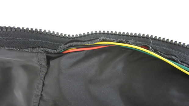 Todos los cables recorren el interior de la chaqueta. Para evitar que los cables que enredados, puede coser los cables en el interior de la chaqueta en varios puntos.