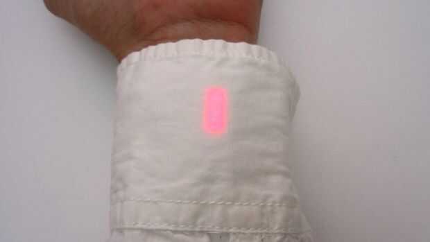 Una tira LED puede colocarse dentro de una manga de la chaqueta o en la manga de una camisa.