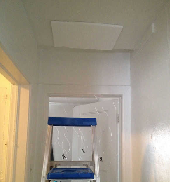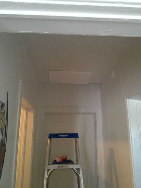 Tomar el tablero de la espuma y presione contra el techo en el lugar que usted quiere producir la broma. (como se ve en la foto #22)