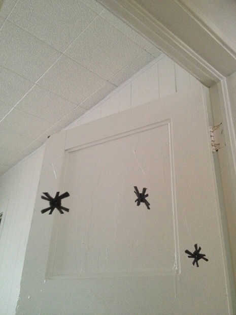 Luego tomar las arañas y colocarlos encima de la puerta y cerrar la puerta para que caiga cuando se abre la puerta.