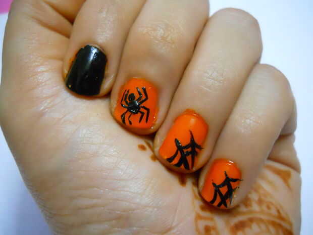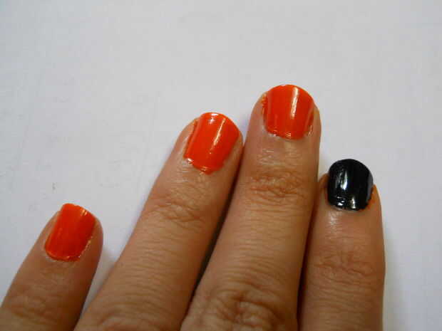 pinté mis un uñas negro porque mi uña estaba teniendo voto tinta y he intentado de todo pero no salen y pintura de uñas naranja aún no podía ocultarlo... así que después de todos los experimentan pintado negro