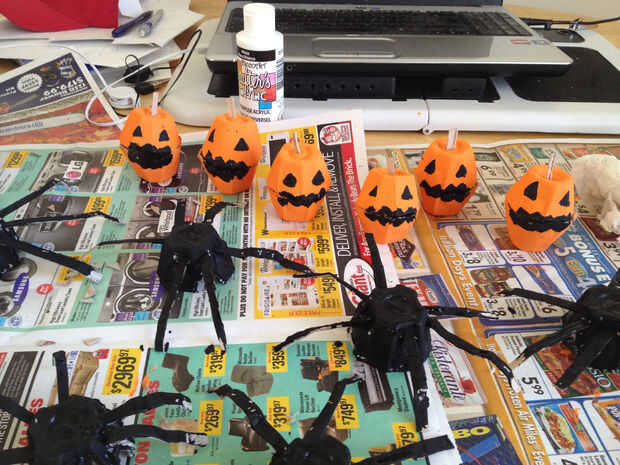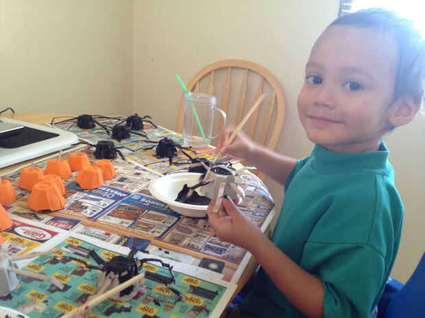 Empuje los agujeros (6 patas por cavidad única) en cada piernas y doblar algo estas piernas que les forma a las patas de las arañas