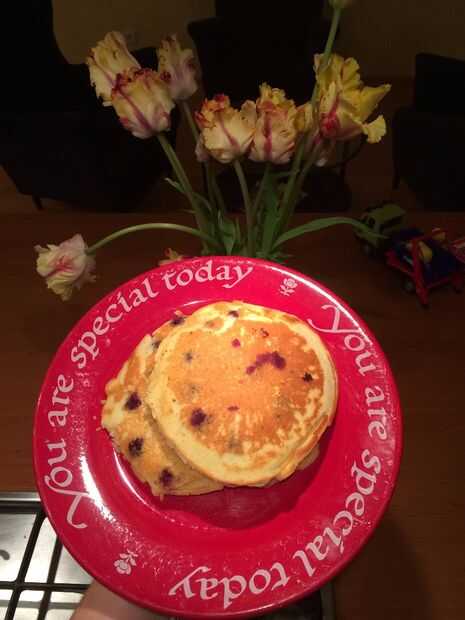 estos panqueques de arándanos son un buen desayuno día perezoso - fácil de preparar y las sobras son ideales para una merienda. : DSeguimos encontrando arándanos aspecto agradables en la tienda de comestibles, que es extraño para esta época del año,