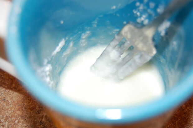 Utilizar un tenedor para combinar el azúcar en polvo y crema. SALPICAR sobre los rodillos.
