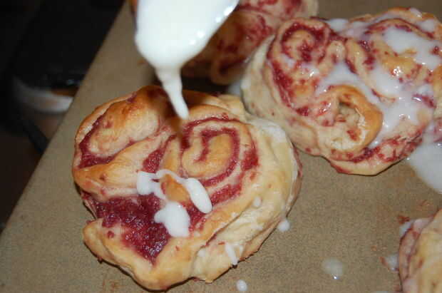 Arándano rojo corazón desayuno rollos (9 / 10 paso)