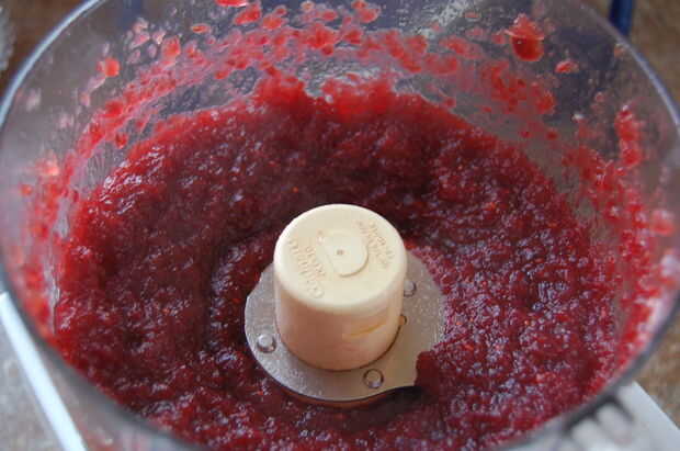 Con una cuchara perforada, pasar tus arándanos en un procesador de alimentos. Proceso hasta que quede suave y casi como una mermelada.