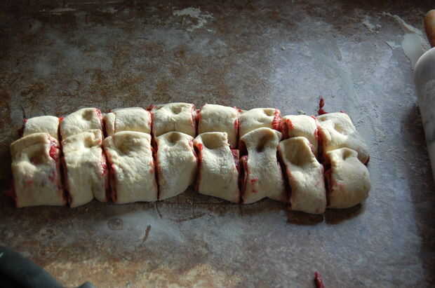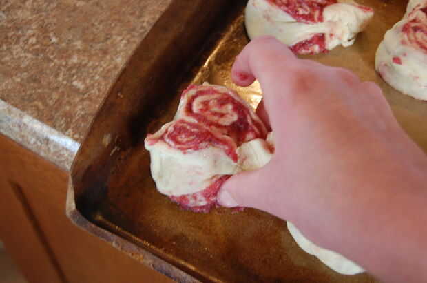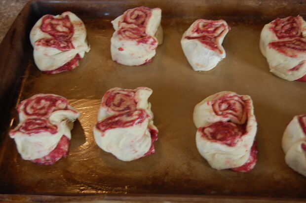 Una vez en dos engrasado ligeramente hornear, cuidadosamente puede tomar el borde inferior y apriete en un punto, lo que es un corazón.