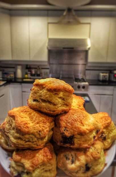 Estos arándanos scones gusto mantecoso cielo flakey. Son perfecta para el té de la tarde y va muy bien con la cuajada de limón. Son realmente ricos sabores lácteos y los arándanos rojos agrega una textura agradable a scone flakey.