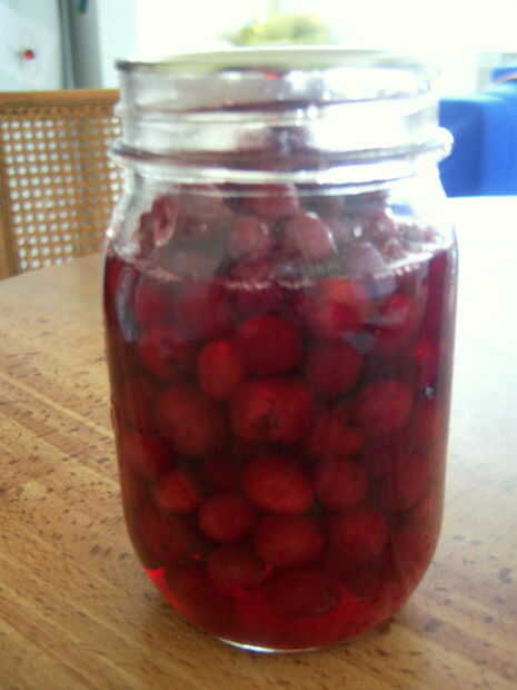 Llenar cada frasco de arándanos con el almíbar. Otra vez, no llene más arriba de la primera línea de tornillo en la jarra.