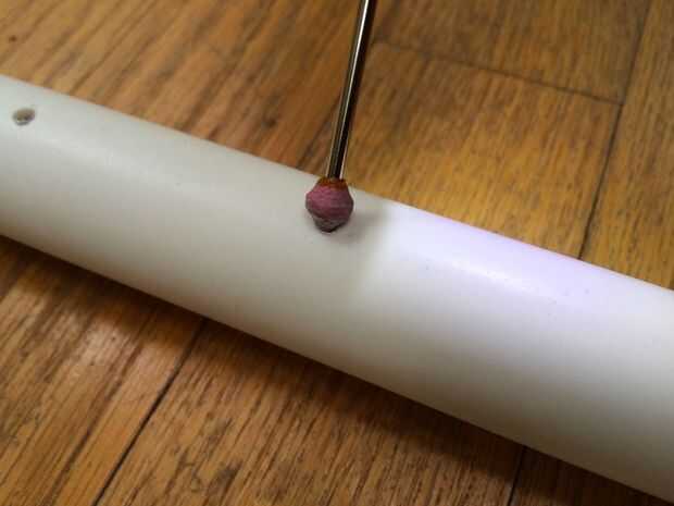 Ahora usted puede limpiar apagado seco borrar marcador sobre el tubo y usar un poco de lija para eliminar el exceso de la perforación.