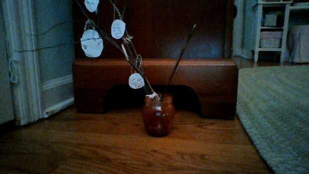 5. con cinta adhesiva la cadena en la parte posterior de los círculos para que hacen un semicírculo