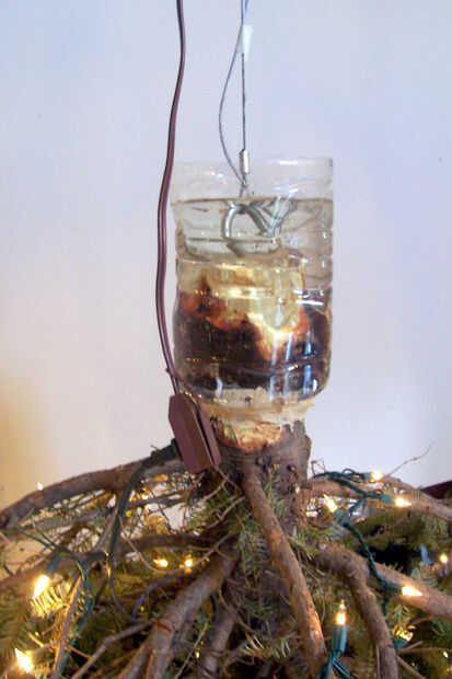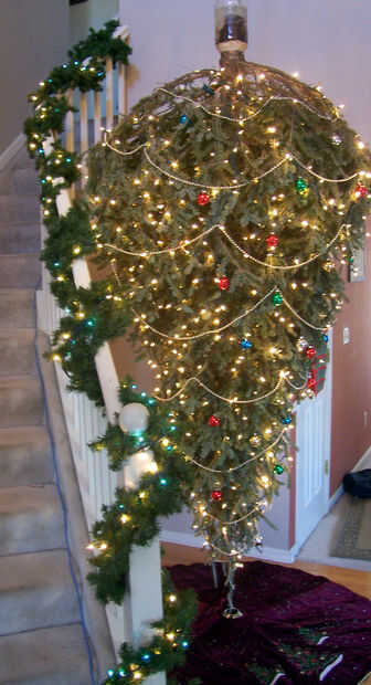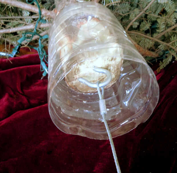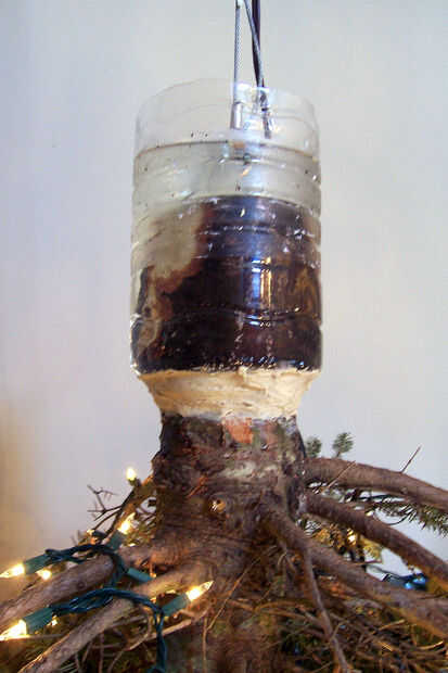 Suspender la parte inferior del árbol con el cable, de un soporte estructural en el techo.