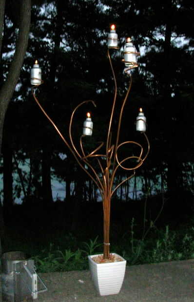 Que esta construido en una noche. Espere dos horas para el árbol. Además de otras dos horas para hacer y preparar las antorchas. Fabricación y soldadura de las hojas tuvieron otra noche más de unas pocas horas para la soldadura.