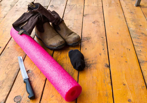 Tengo esto de las botas - me gustan, pero siempre toman el camino más espacio del que realmente necesitan en el estante del zapato ya que flop sobre. De parte de su encanto, pero calzado espacio puede ser valiosa. Quería que los becerros a levantarse por sí mismos haciendo mi un simple 'árbol de arranque'. Arranque de árboles han estado alrededor por un tiempo así que ésta es no una idea original por cualquier medio, pero gracias a para inspirar esta versión más simple de uno.