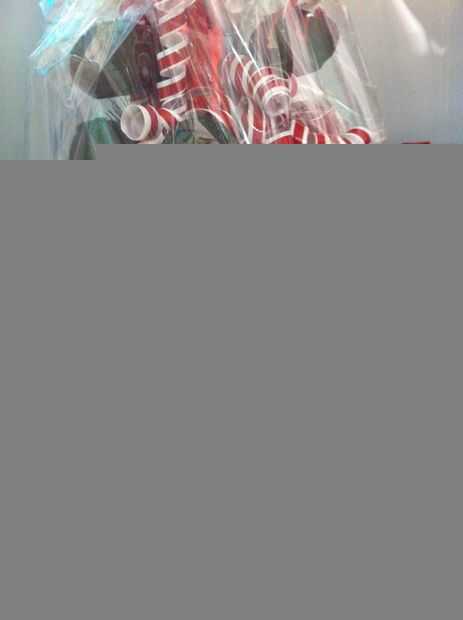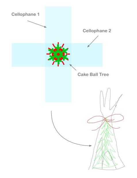 Coloque el árbol de bolas de pastel terminado en el centro y levante el celofán alrededor del árbol con cuidado, reuniendo el extra en la parte superior.