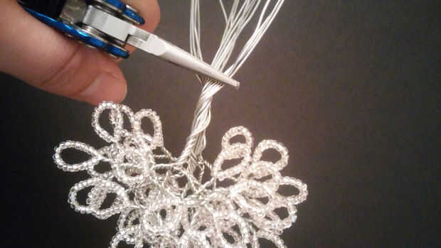 Repetición con racimos de 3 hasta que todos los tallos que hiciste ahora en grupos de 3 ramitas
