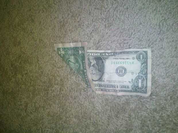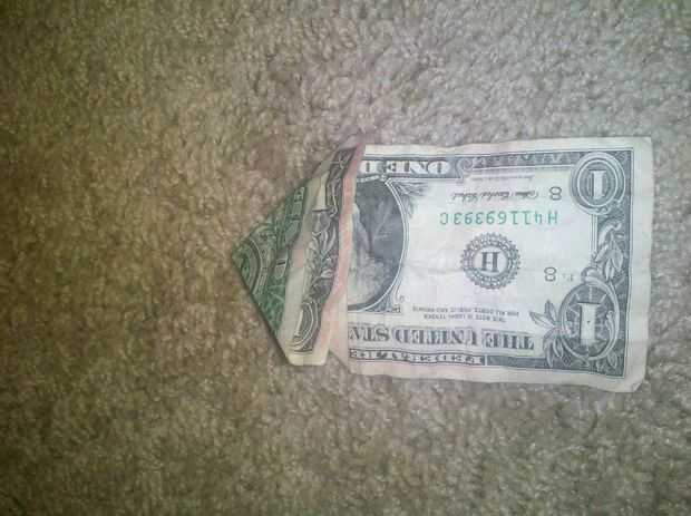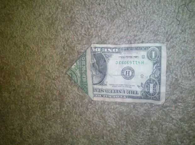 Doblar el billete de un dólar en forma de las ramas de la parte inferior: