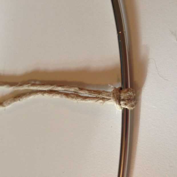 Doble la cuerda por la mitad y sujete la parte inferior del anillo usando nudos de alondra. No importa si la haces normal o inversa, solo hacerlas todas el mismo o alternativo o al azar. Hicieron todo regular.