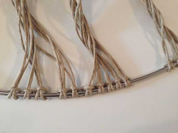Cuando termine colocar las cuerdas, moverlos todos juntos en la parte inferior del anillo. Tienes 24 nudos y 48 cuerdas de ring.
