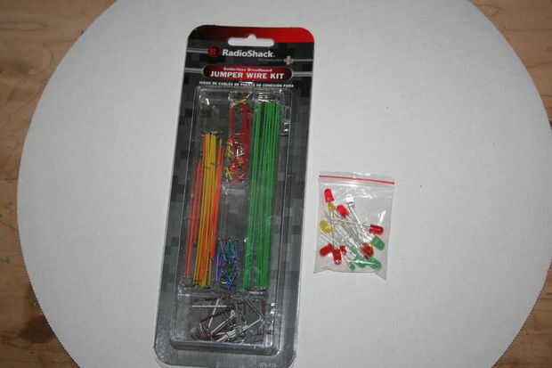 LEDs y cables puente = te lo adivinó... Radio Shack