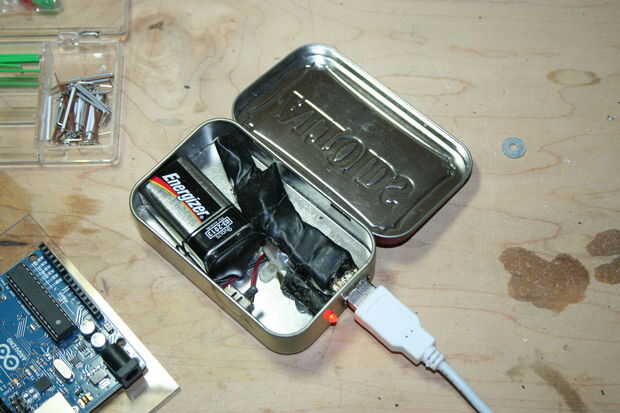 La fuente de alimentación es cargador de Altoids que la fuente de 5v de la placa de Arduino (
