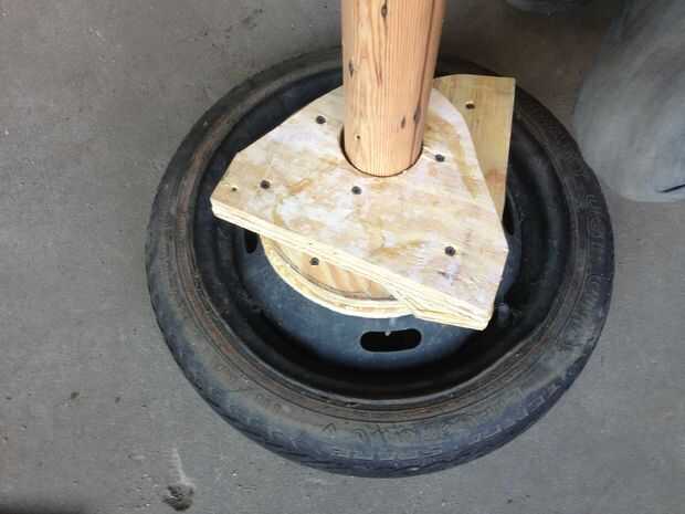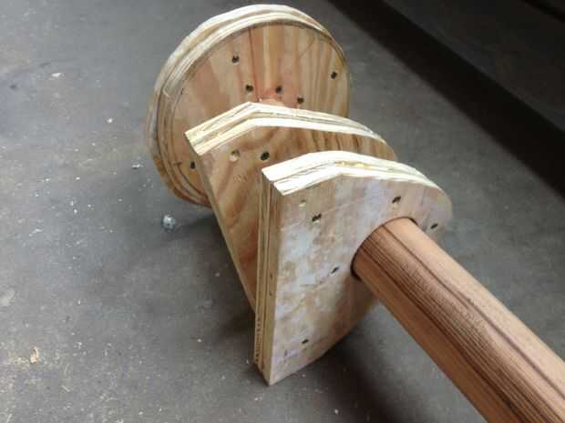 Pega el árbol en el zócalo en el centro, y luego conecte a través del otro lado con un 1/4" perno, perforación previa para evitar que se resquebraje. La conexión final de grano no será el más fuerte, así que pop en algunos tornillos del dedo del pie o triangular los apoyos así.