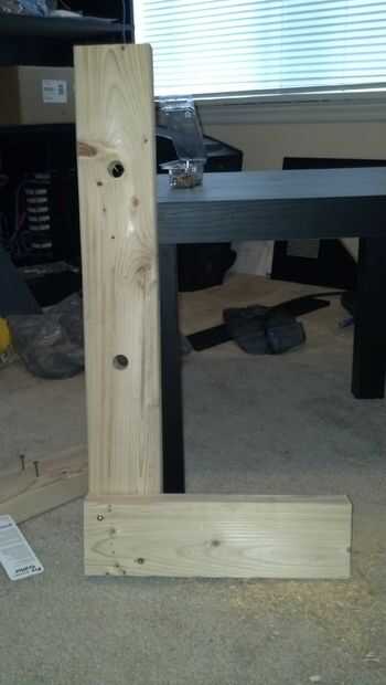 La forma más fácil hacer un orificio que será atravesado por una barra o similar (tiene que ser la misma altura en ambos lados) es sujetar o unir ambas piezas y perforar directamente a través de ambos. Idealmente estos sería asegurados a su mesa de trabajo y perforar a través de con una prensa del taladro, pero no tengo una de esas en mi apartamento. Fijar la bobina al lado de los montantes y comentar un buen lugar donde no sobresalen por la parte superior y perforar el agujero en el centro de los tableros. Entonces rodó el carrete más abajo y perforar otro agujero por lo que la capacidad total sería dos bobinas en el interior de los montantes.