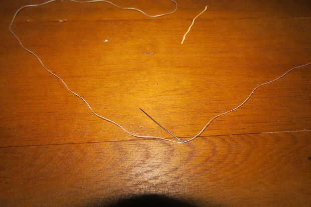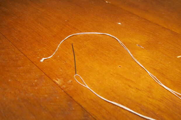 Enhebre la aguja y sujetar con un nudo en el extremo del hilo.