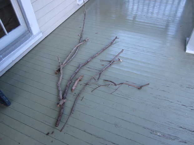 Nos when't en una familia de excursión en el bosque tratando de encontrar una rama de buen tamaño (ya muerta) como el tronco principal del árbol. Este año hemos querido un poco bonsai siente, así que elegimos un "tronco" que tenía un montón de curvas. También recogimos ramas de varios tamaños para sujetar a la rama de "tronco". Nota; Tomé esta foto después de que habíamos empezado a montar, por lo que la rama de "tronco" no está en esta foto.