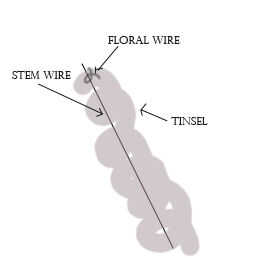 3) seguro en el extremo lateral con otro pedazo de alambre floral