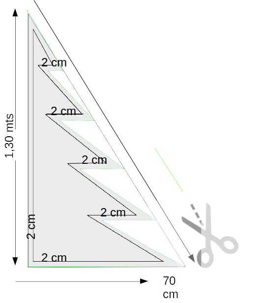Para empezar debe tener el patrón de corte a la altura que quieras, comenzar con un rectángulo, para que esta imagen fue desarrollada con una altua 1,30 metros de ancho por 70 centímetros, que es el corte del patrón, hay que recordar que el patrón de corte debe ser mayor que el patrón de costura o va a ser más pequeño que el deseado.