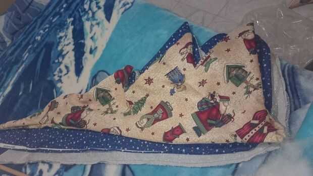 Recoger tres telas de Navidad, para cada color necesita paño y medio teniendo en cuenta que la parte superior de la tela es de 1,50 metros. Preferentemente son del mismo tipo de tela. Por supuesto usted puede también telas que tengas en casa o en tu taller.