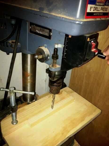 Fijar un tope en el taladro para perforar, cerca del centro de cada una de las piezas como usted puede. Al instalar, perfore un orificio de prueba, luego voltear la pieza 180 grados para ver si el agujero es dentro de 1/16" del centro.