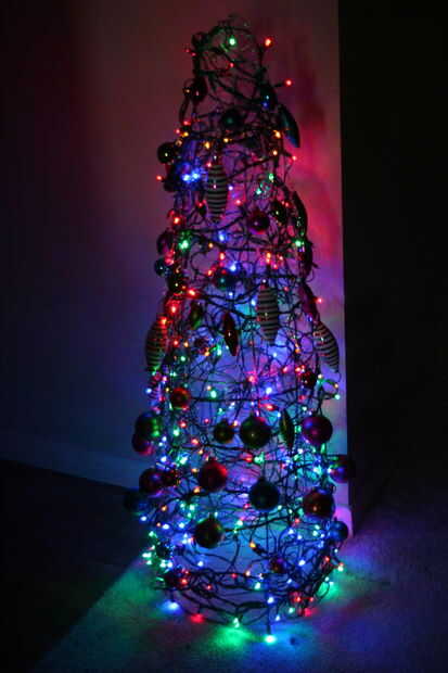 este es un rápido y fácil espiral árbol de Navidad hecho de pesado calibrador de alambre de cobre y una cadena de luces. Mientras que no como completo cuerpo fragante como sus parientes frondosos, lo que me encanta de este árbol de alambre es que pu