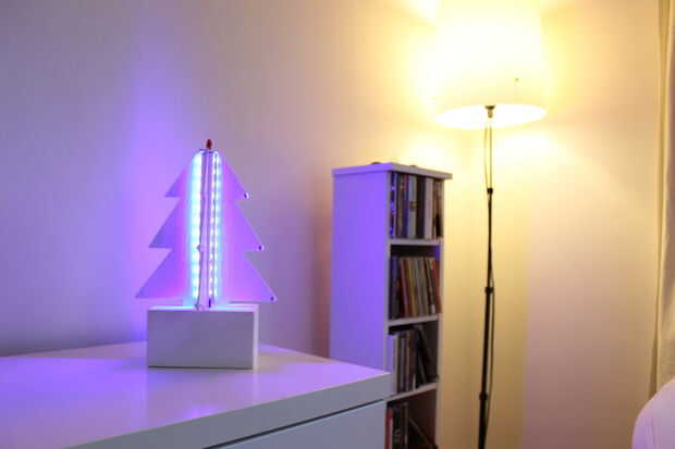 Energía con una fuente de alimentación externa de 12 V y de prueba Presione el botón y seleccione todos los efectos de luz predefinidos. A continuación, apáguelo con una luz ambiente suficiente y verificar que el árbol permanece apagada. A continuación, reproducir un ambiente claro oscuro y comprobar que se enciende automáticamente!