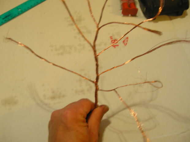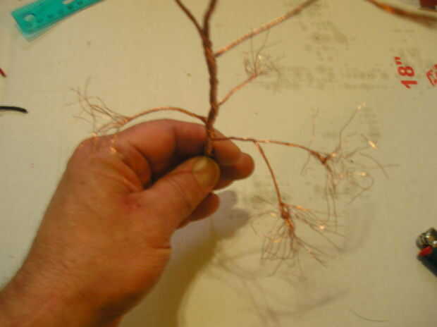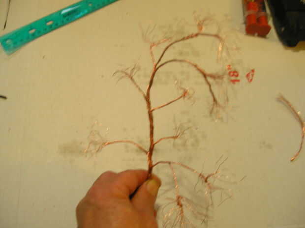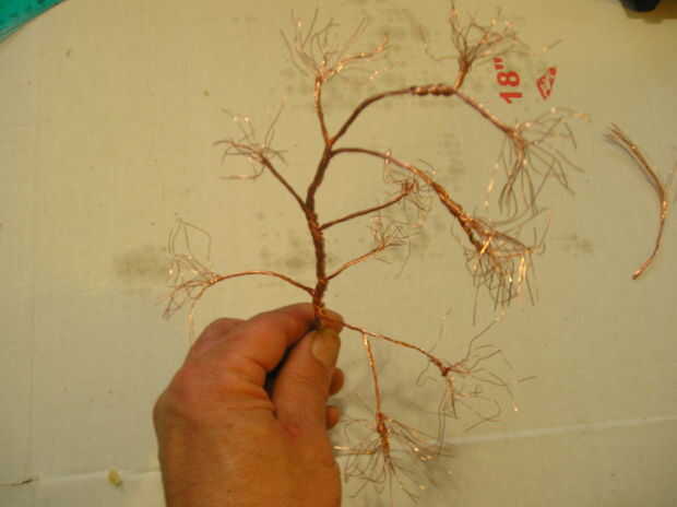 Seguir el mismo proceso básico con cada rama hasta que tienes todo hecho. Puede Agregar agujas extras usando el cable extra que recortar antes envolviendo el centro alrededor de la rama y desenroscar los cables de cada extremo (yo hice esto en la más baja y las ramas más altas).
