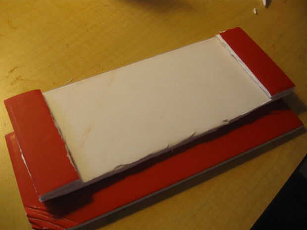 Del pegamento de los rectángulos de 3 por 1 pulgada en ambos bordes de uno de los rectángulos de 3 por 8 pulgadas. Ahora debe tener dos rectángulos de pulgadas de 3 por 8, uno de los cuales tiene dos pies en cada lado.