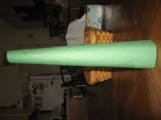 Primero hacer un cono de papel y cortar el borde inferior plano, que usé papel verde porque no podía usar cinta adhesiva.
