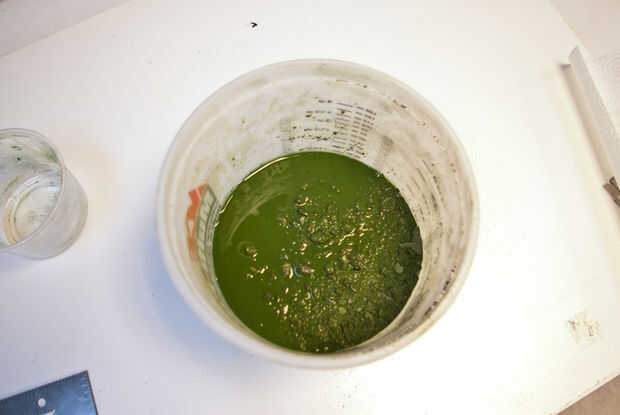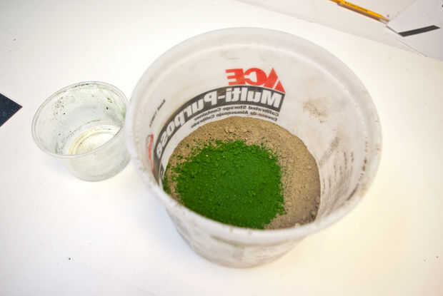 Un cálculo del volumen rápido me dijo que el proyecto pesaría entre 2 a 3 libras. Así que mezclé hasta 5 libras de 5000 psi. concreto y agregado pigmento imperecedero.