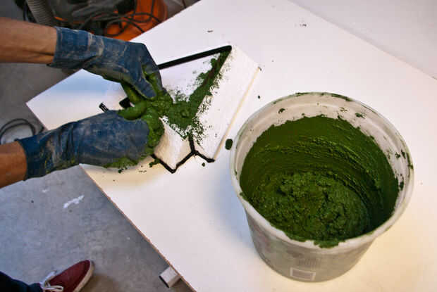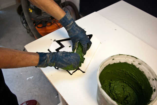 Vibrar la forma tanto como sea posible para ayudar a escapar de las burbujas de aire. Presione el hormigón en las paredes de forma con los dedos. Utilice un lápiz o un palito y usarlo para ayudar a romper grandes bolsas de aire y consolidar el concreto.