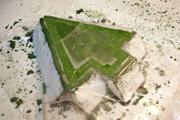 Aplanado en agregado decorativo en la superficie superior significa ambos lados de la pieza debe ser pulida para exponer el agregado.