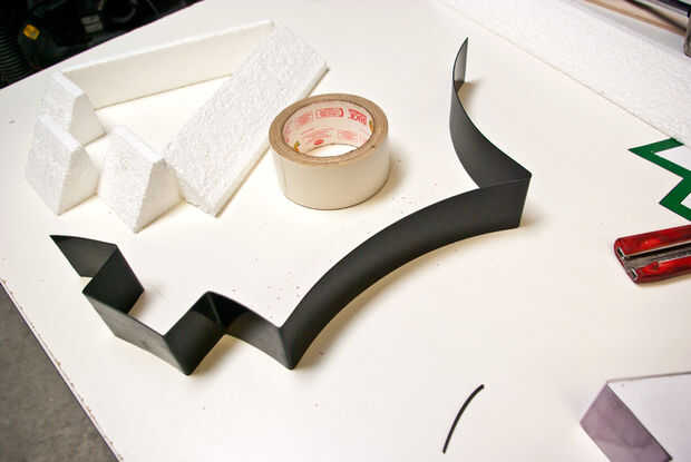 Usando un trazador de líneas de espesor forma plástica como esto le dará al concreto una textura uniforme en el exterior, y ayudará a mantener los lados rectos en la pieza acabada. Las curvas en el trazador de líneas también se van a dar los bordes un radio bueno, así que no habrá ningún esquinas filosas.