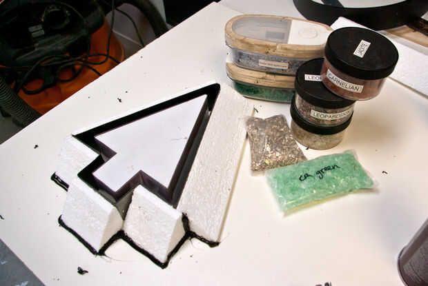 - Ligeramente adhesivo en aerosol en la parte inferior de la forma de la niebla.