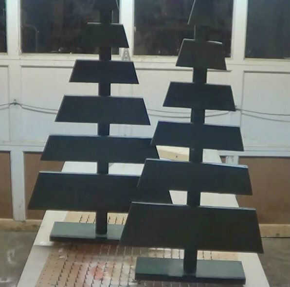 este conjunto de estantes en forma de árbol de Navidad se produjo porque tenemos un perrito a quien agujas de pino son una especie de equivalente canino a catnip y cuyo comportamiento alrededor envuelto cosas inevitablemente resulta en rápida destruc