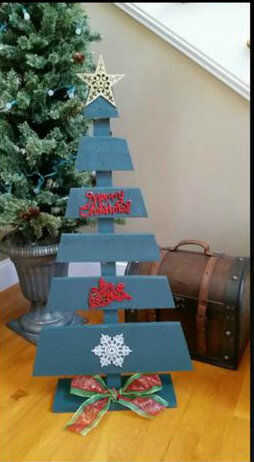 Este árbol de Navidad no tradicionales de una escalera de madera y tablones de madera de pino es la manera perfecta para decorar para las fiestas si, A) no tienes árboles reales en su apartamento, o, 2) usted o su ser querido es un gran fan de ferret